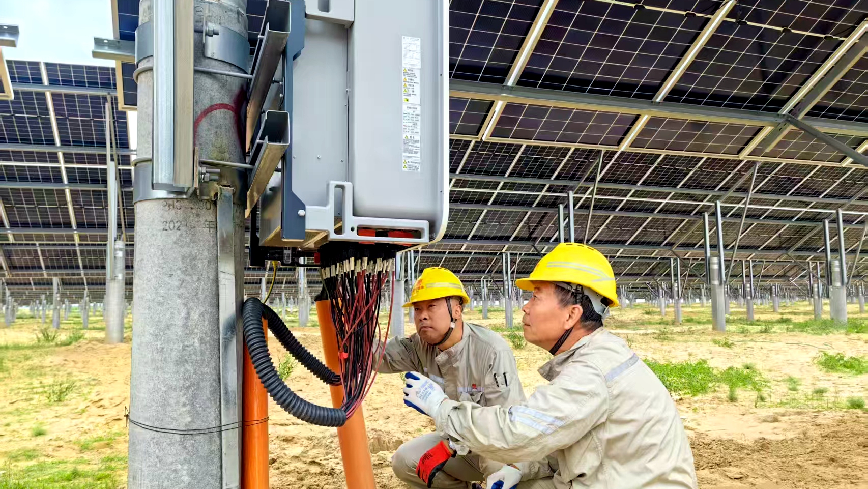 在毛烏素沙漠千里瀚海的南緣,陜西省定邊縣境內(nèi),駐扎著一支特殊的“追光團(tuán)隊(duì)”。9月的風(fēng)已捎來(lái)幾分涼意,卻吹不散這支特殊隊(duì)伍的熱忱。他們與連綿沙丘為鄰,同呼嘯風(fēng)沙作伴,在蒼茫大漠中筑起一道璀璨的“光伏長(zhǎng)城”。這些如沙漠胡楊般堅(jiān)韌的守護(hù)者,用汗水澆灌綠色能源的夢(mèng)想,讓青春在戈壁綻放別樣光芒——他們就是西安熱電廠白玉光伏電站的運(yùn)維尖兵。