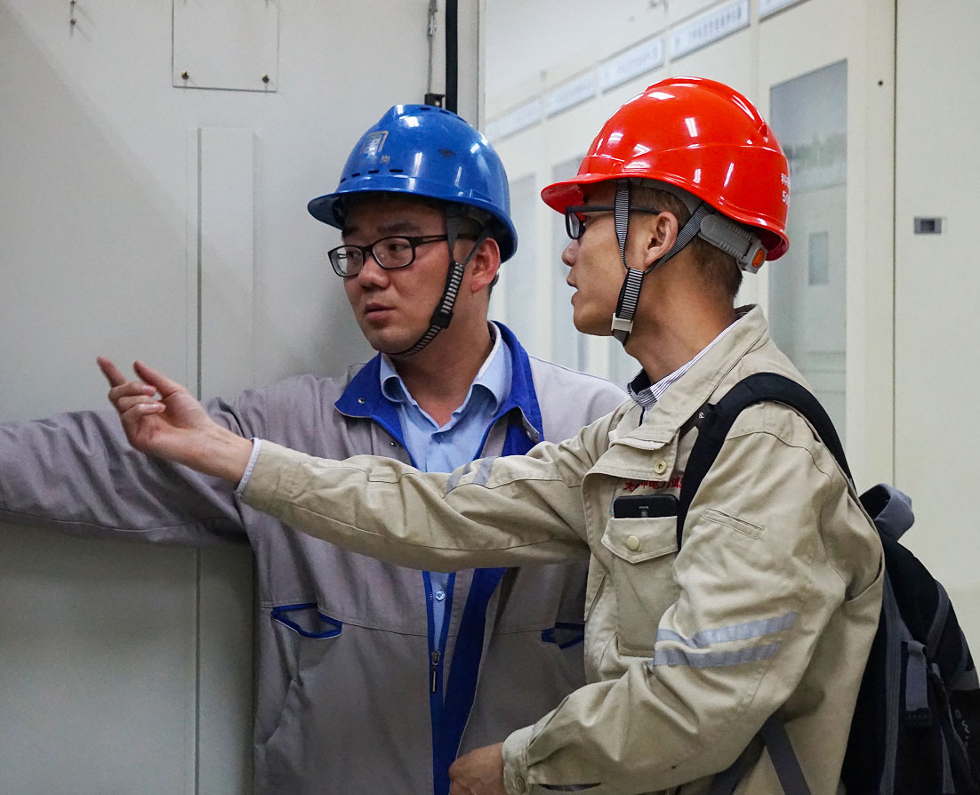 研發(fā)團隊主要負責人在現(xiàn)場與發(fā)電企業(yè)技術人員溝通調試與操作細節(jié)