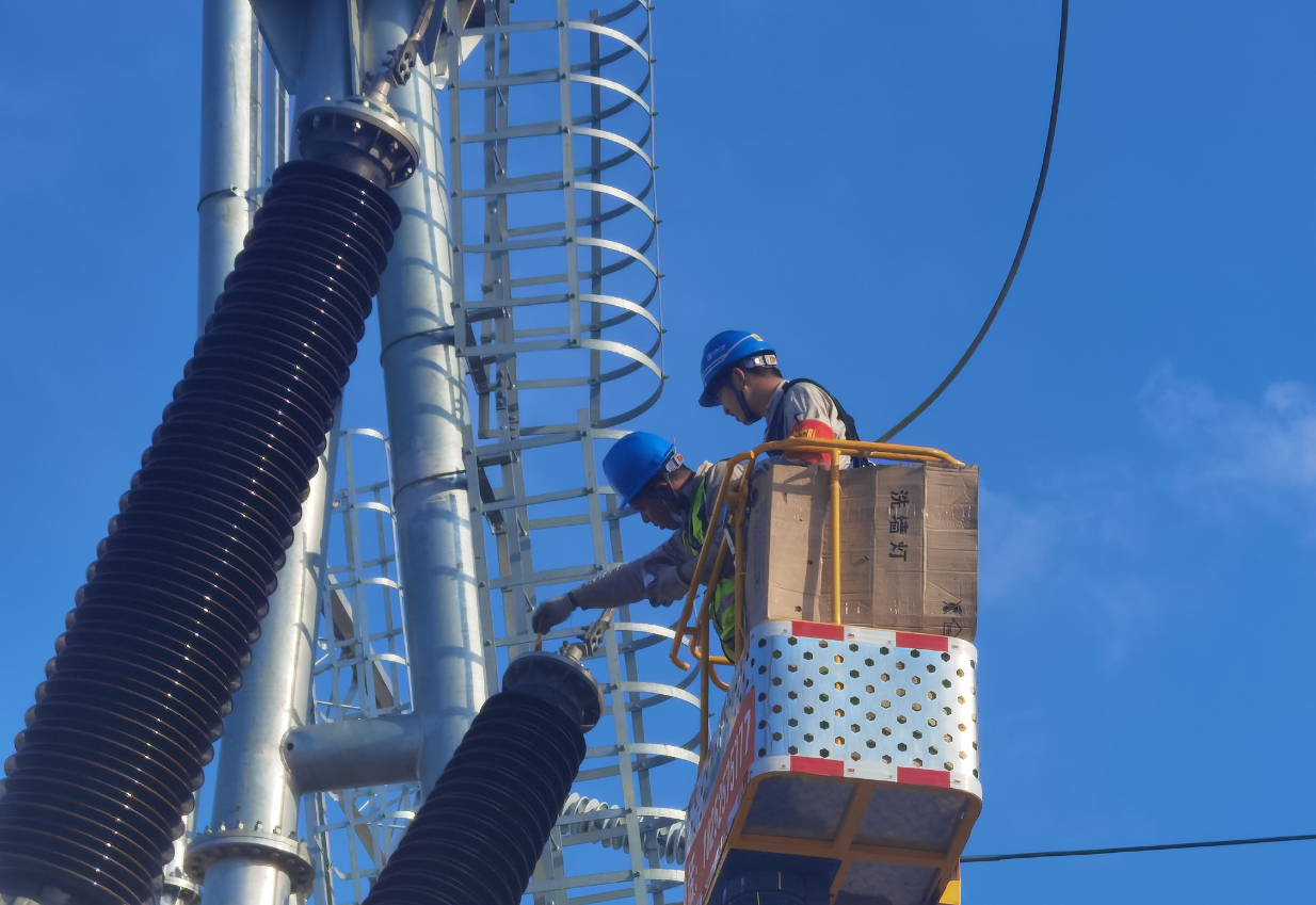職工在進行主變?nèi)嗨⑵峁ぷ?/p>