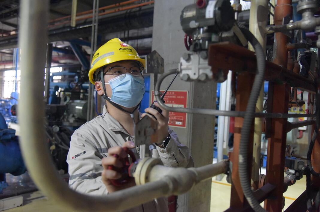 發(fā)電部運(yùn)行值班員靳博正在對(duì)發(fā)電機(jī)進(jìn)行補(bǔ)氫