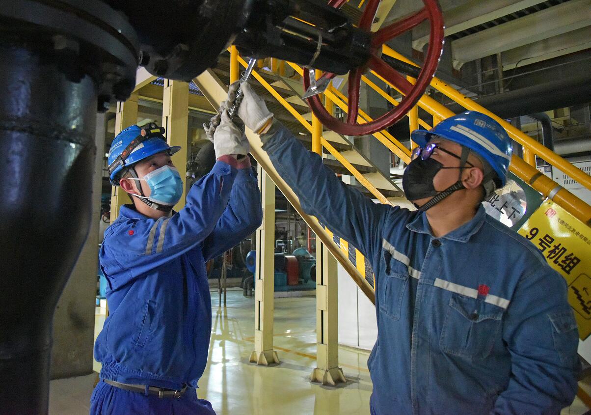 檢修部汽機(jī)一班張寰和汪培協(xié)力調(diào)整閉式水冷層出門閥門狀態(tài)
