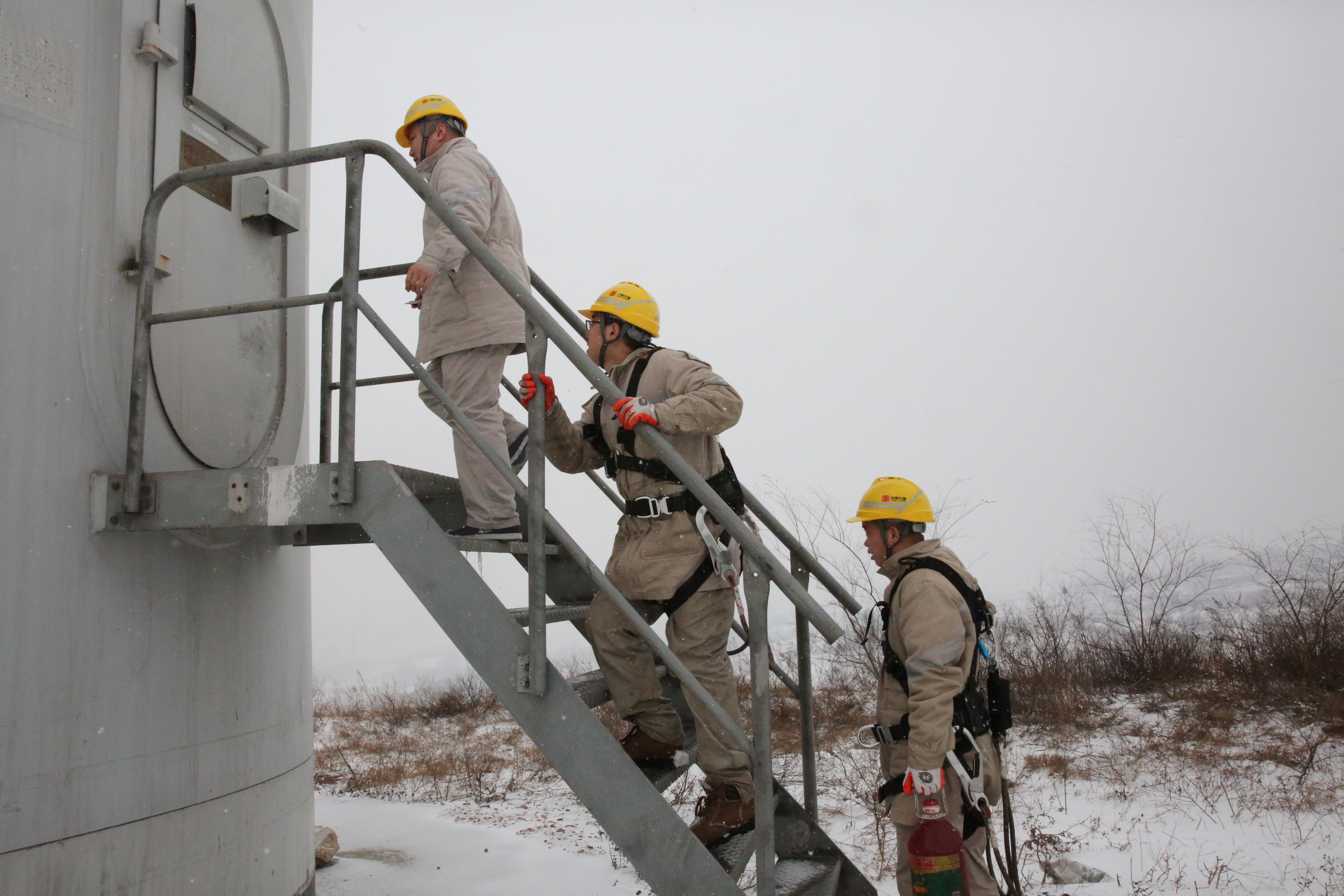 開艙門、做安措、“三講一落實”……風(fēng)機(jī)底下的溫度已逼近零下十度,風(fēng)機(jī)艙外樓梯上的冰溜子直杠杠的掛著,八十多米高的風(fēng)機(jī)機(jī)艙里或許更是一片“凍天”,但他們?yōu)槌弥★L(fēng)期消缺無所畏懼。