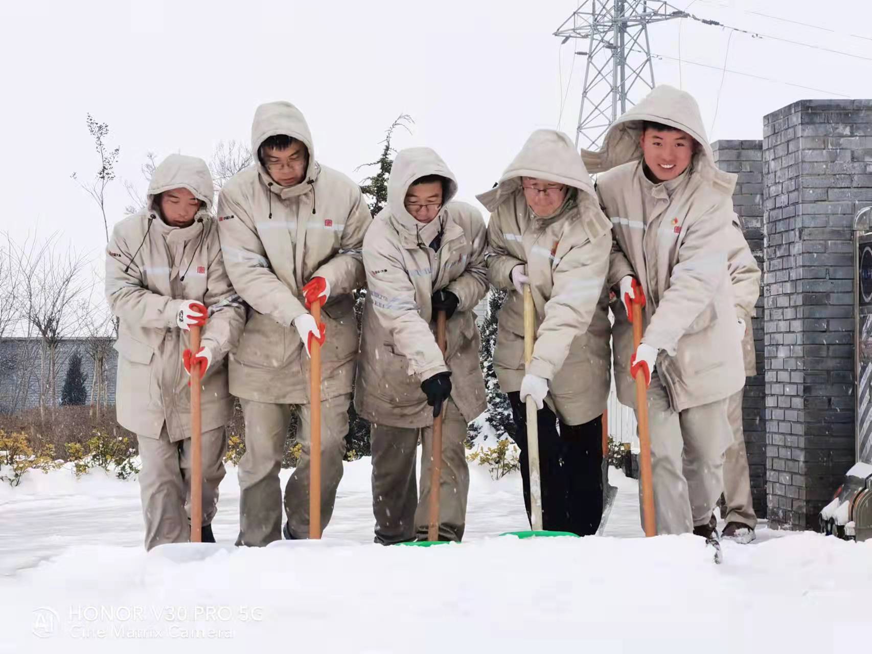 組織升壓站職工對站內(nèi)道路進(jìn)行清雪。陳偉攝