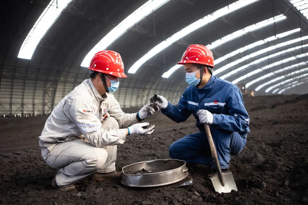 燃料質(zhì)檢員在檢查煤質(zhì)