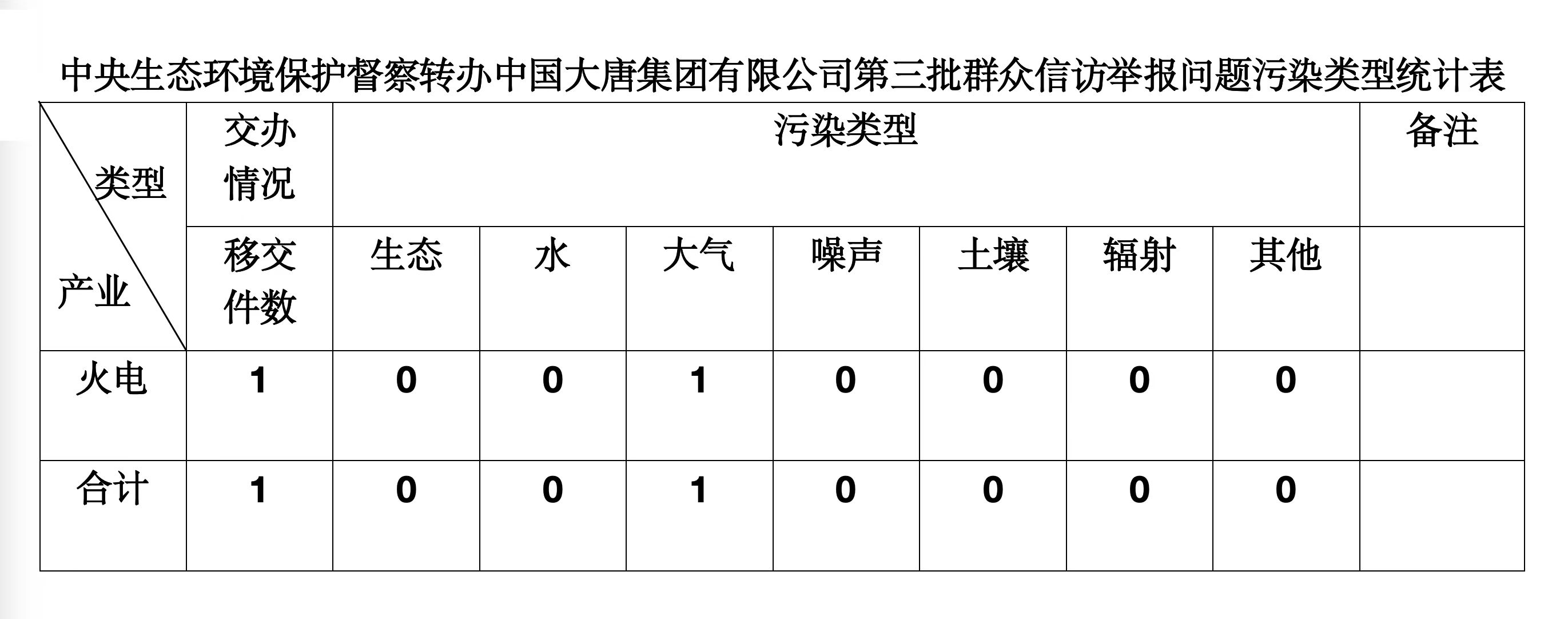 2025年6月5日,中央第七生態(tài)環(huán)境保護督察組向中國大唐集團有限公司移交第三批群眾信訪舉報件,共計1件,為來電舉報,涉及大氣問題1個。所有舉報件辦理工作已第一時間進入調(diào)查核實辦理程序,辦理情況將按照相關要求反饋督察組,并及時向社會公開。
