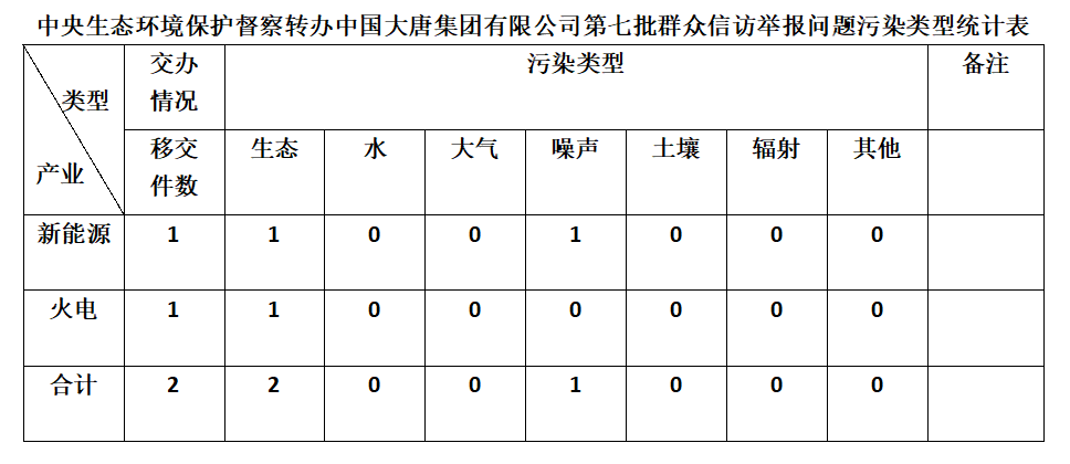 2025年6月10日,中央第七生態(tài)環(huán)境保護督察組向中國大唐集團有限公司移交第七批群眾信訪舉報件,共計2件,均為來電舉報,涉及噪聲問題1個、生態(tài)問題2個。所有舉報件辦理工作已第一時間進入調(diào)查核實辦理程序,辦理情況將按照相關(guān)要求反饋督察組,并及時向社會公開。