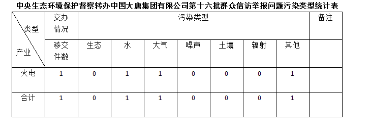 2025年6月22日,中央第七生態(tài)環(huán)境保護(hù)督察組向中國大唐集團(tuán)有限公司移交第十六批群眾信訪舉報件,共計1件,為來電舉報1件,涉及水問題1個、大氣問題1個、其他問題1個。所有舉報件辦理工作已第一時間進(jìn)入調(diào)查核實辦理程序,辦理情況將按照相關(guān)要求反饋督察組,并及時向社會公開。