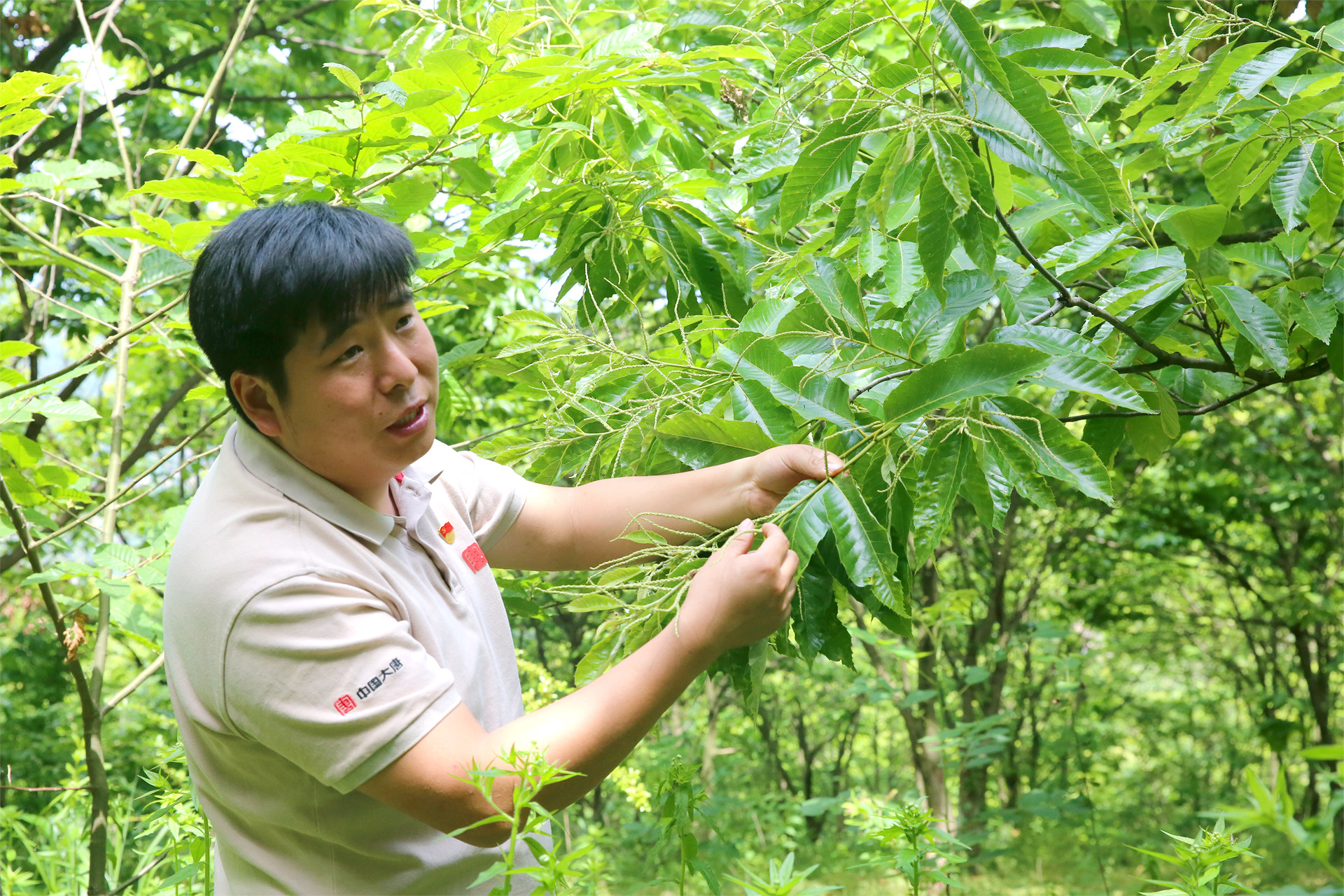 方名興時常前往板栗、脆李種植地查看長勢、有無病蟲害。在他看來,這些就是新安群眾的“致富樹、小康樹”。和群眾一起查看了一片板栗林后,他指著一枝樹葉泛黃的板栗樹說:“看,這棵已經(jīng)感染板栗葉黃斑病了!這是霉菌侵害到葉子出現(xiàn)黃斑,然后逐步擴(kuò)散到整個葉片、枝條,后期病斑中部壞死變黃褐色, 嚴(yán)重影響板栗產(chǎn)量,我們要盡快治理?!?/p>