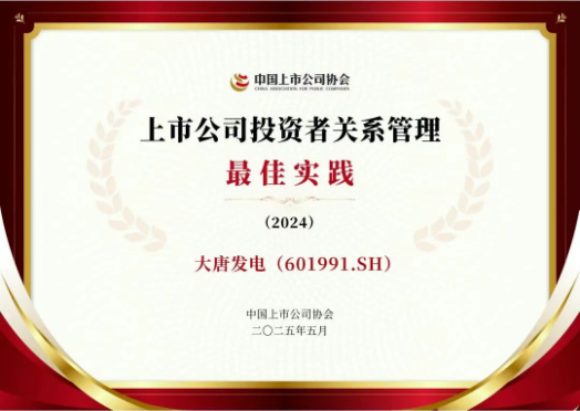 2025年,大唐國(guó)際獲評(píng)“上市公司投資者關(guān)系管理最佳實(shí)踐”。所屬托克托發(fā)電公司“北疆綠電亮北京”黨建品牌獲評(píng)“2024年度電力行業(yè)黨建影響力企業(yè)典型”稱(chēng)號(hào);保定供熱公司“暖·和到家”服務(wù)品牌入選“中國(guó)品牌優(yōu)秀典型案例”。