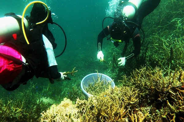 At the start of the project, DDPI collaborated with local government agencies, including the Faculty of Marine and Fisheries at Halu Oleo University, the Southeast Sulawesi Environmental Protection Bureau, the Southeast Sulawesi Marine and Fisheries Management Bureau, the South Konawe Environmental Protection Bureau, local military units, and the police force. Together, they conducted a comprehensive marine survey of the coral reefs in the region, gaining insight into the current status, distribution, and ecological challenges. Every step was taken with great caution, so as not to disturb the fragile ecosystem.